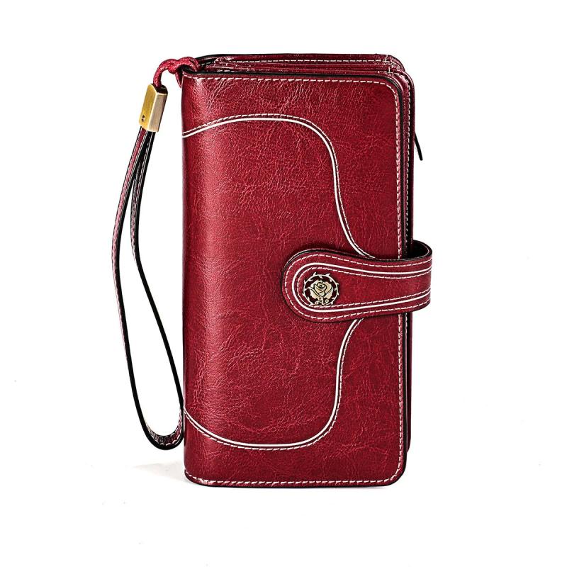 Stay organized and stylish with this multi-functional long lady's purse handbag made of RFID leather. It features a large capacity to hold all your essentials.