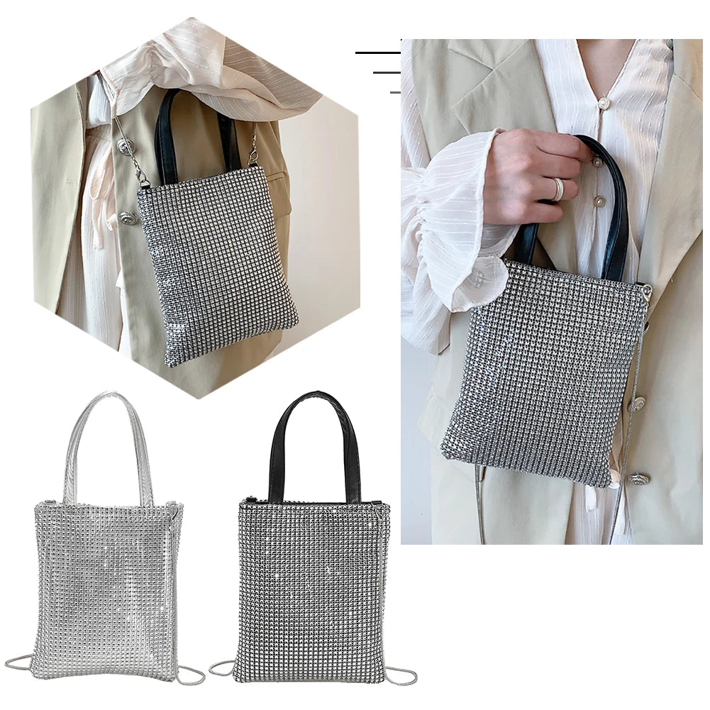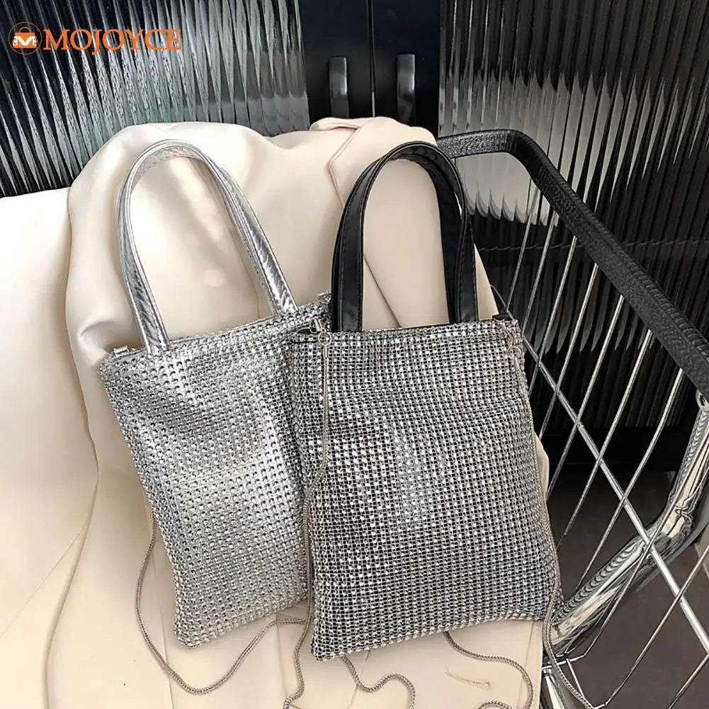 Elegant and stylish solid rhinestone chain shoulder bag suitable for casual outings and leisure activities.