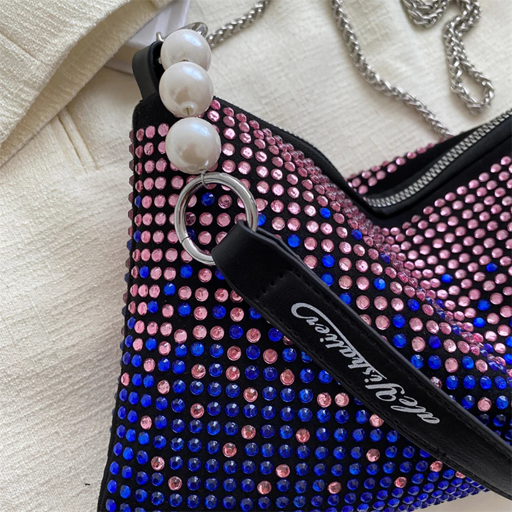 Rhinestone Crossbody Bag Gradient Clutch Wedding Purse Handbag