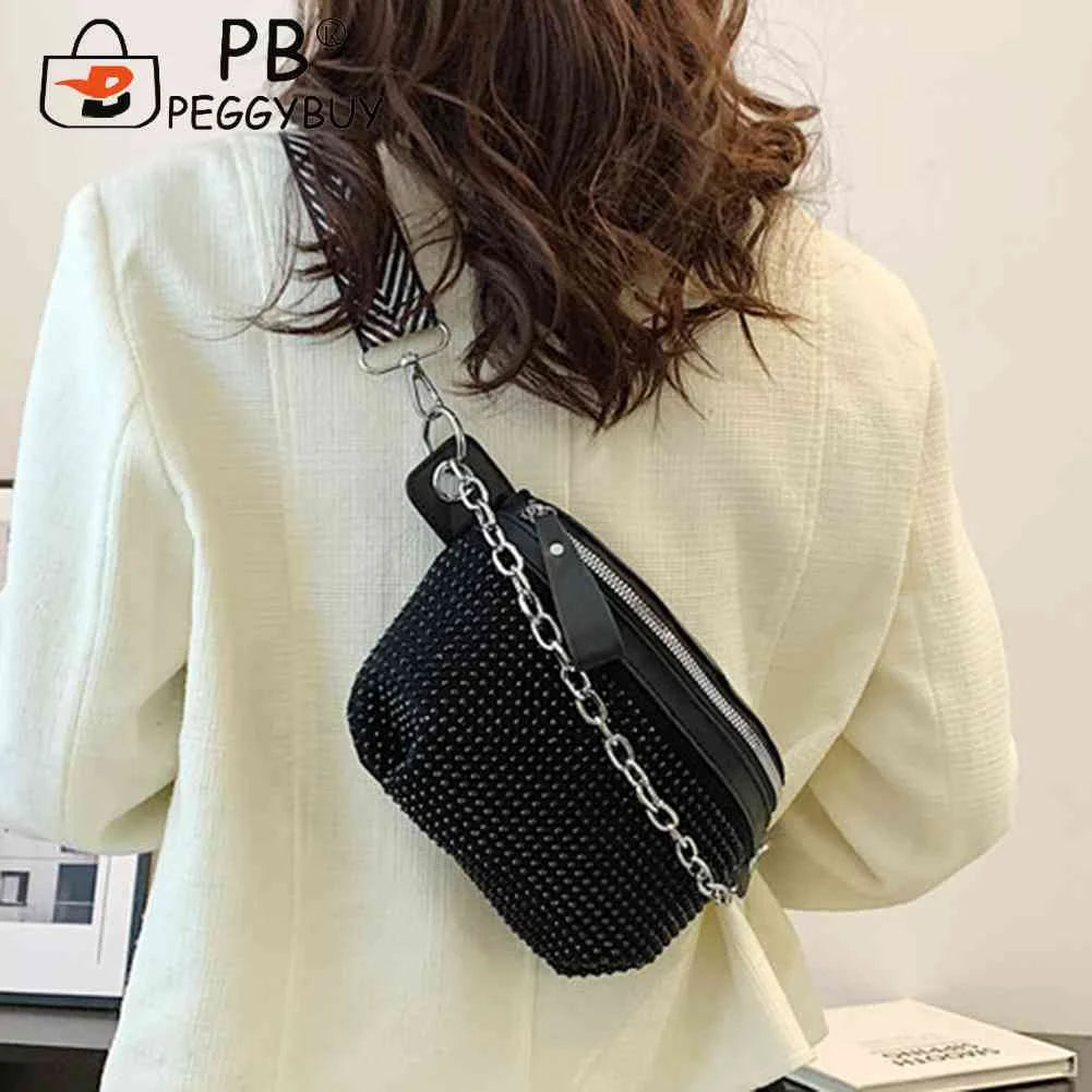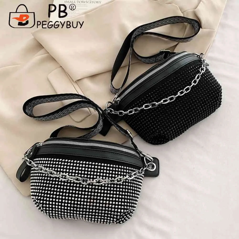 Rhinestone Ladies Handbags Chain Portable for Weekend Vacation