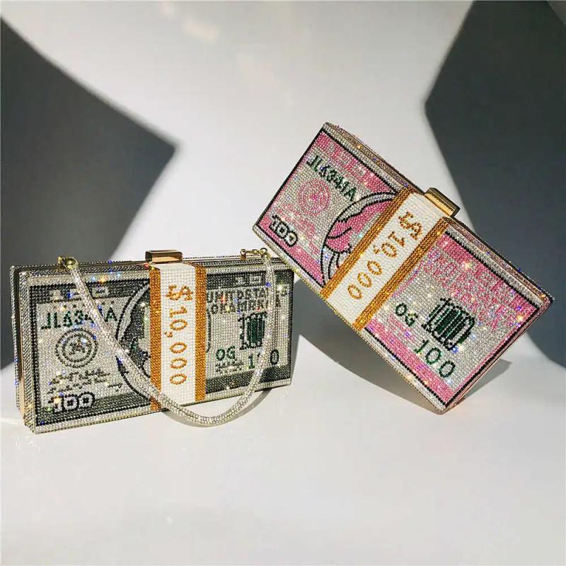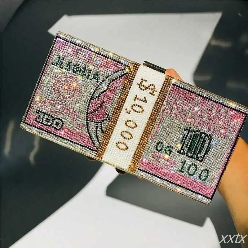 Rhinestone Money Clutch Purse 10000 Dollars Cash Evening Wedding Bag