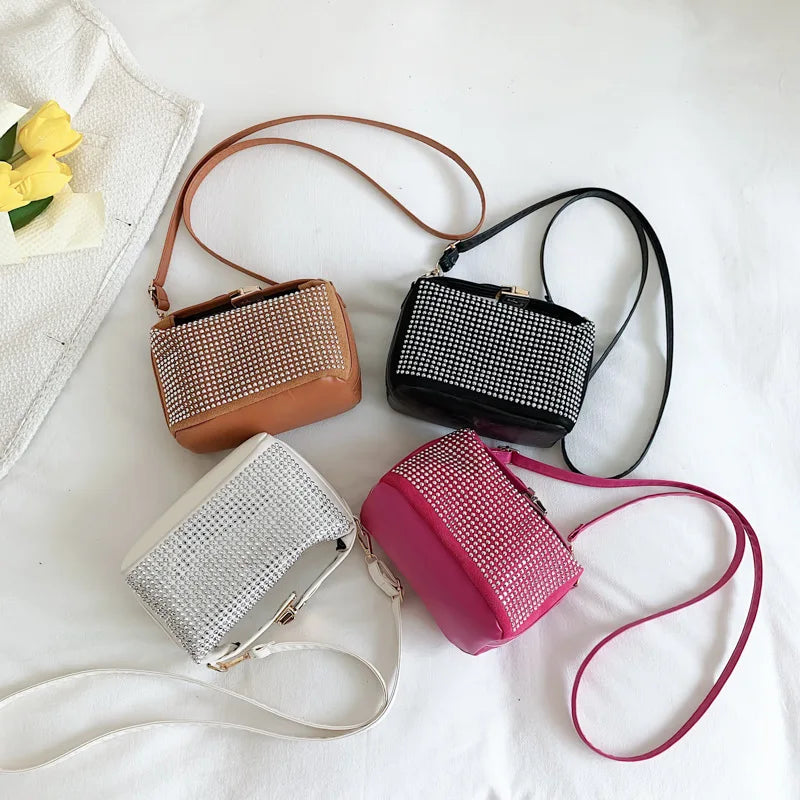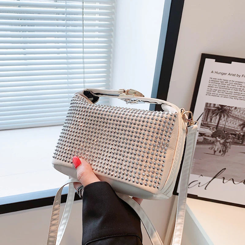 This elegant clutch bag features sparkling rhinestones that add a touch of glamour to your evening outfit. It can be carried as a shoulder bag and is perfect for special occasions like banquets and parties.