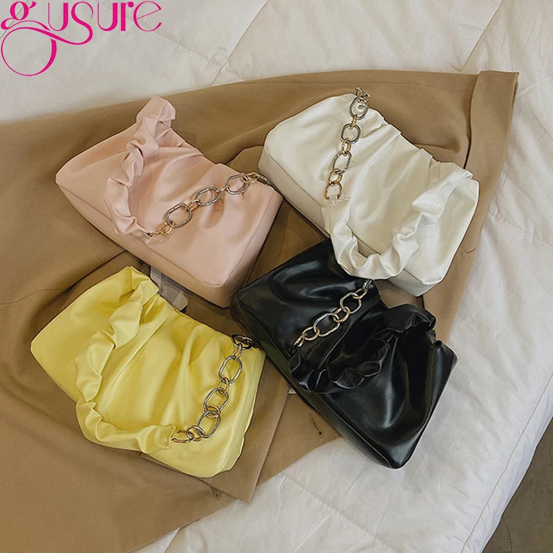 Ruched Cloud Small Clutch Handbag Purse Female Spring Chain Shoulder Bag