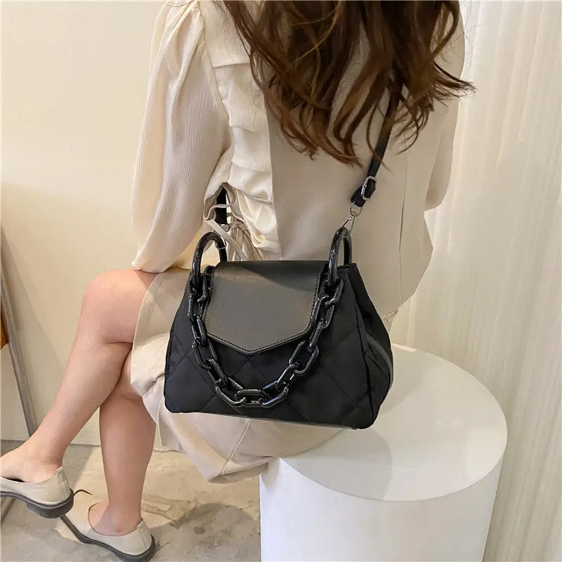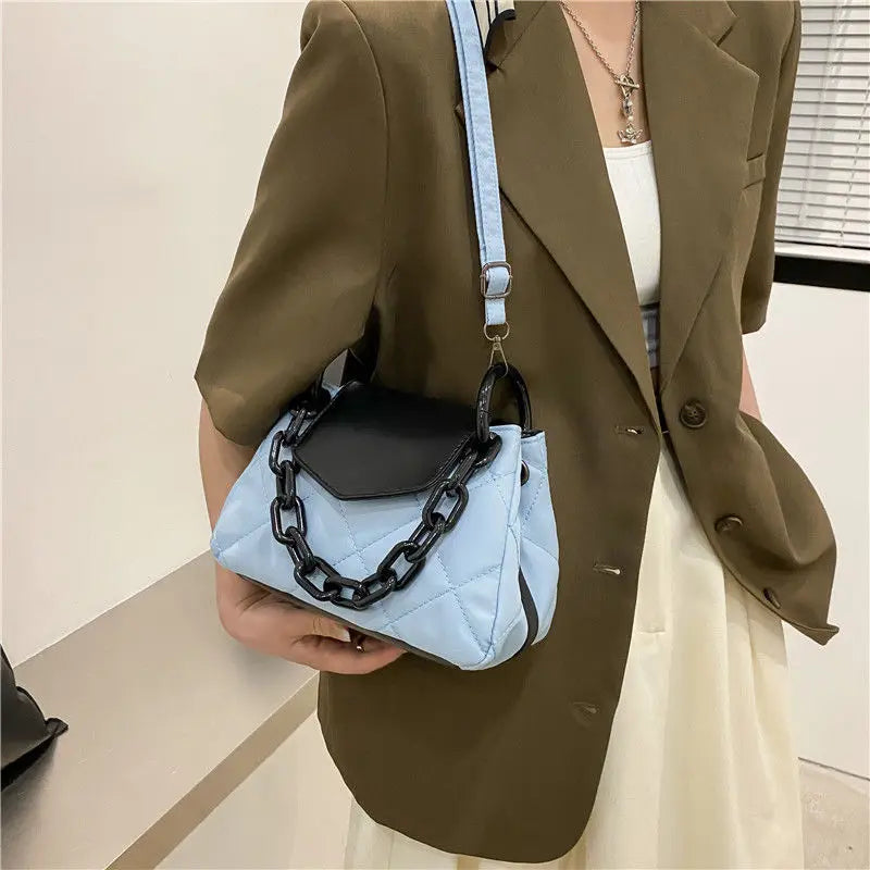 Ce sac à bandoulière de luxe est parfait pour les passionnés de mode. Il offre un design élégant avec une texture de haute qualité, une capacité spacieuse et une chaîne de diamants brillants.