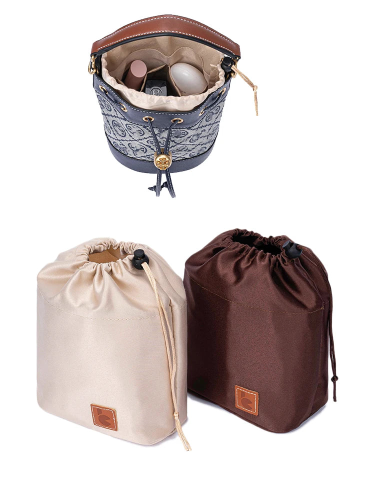 Keep your T MONOGRAM Bucket Bag neat and organized with this soft satin fabric drawstring makeup bag liner. The handbag tote inner shaper provides storage and easy access to your essentials.