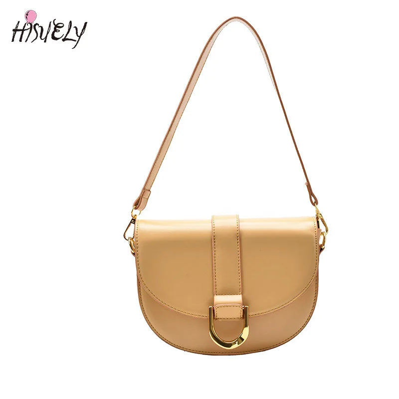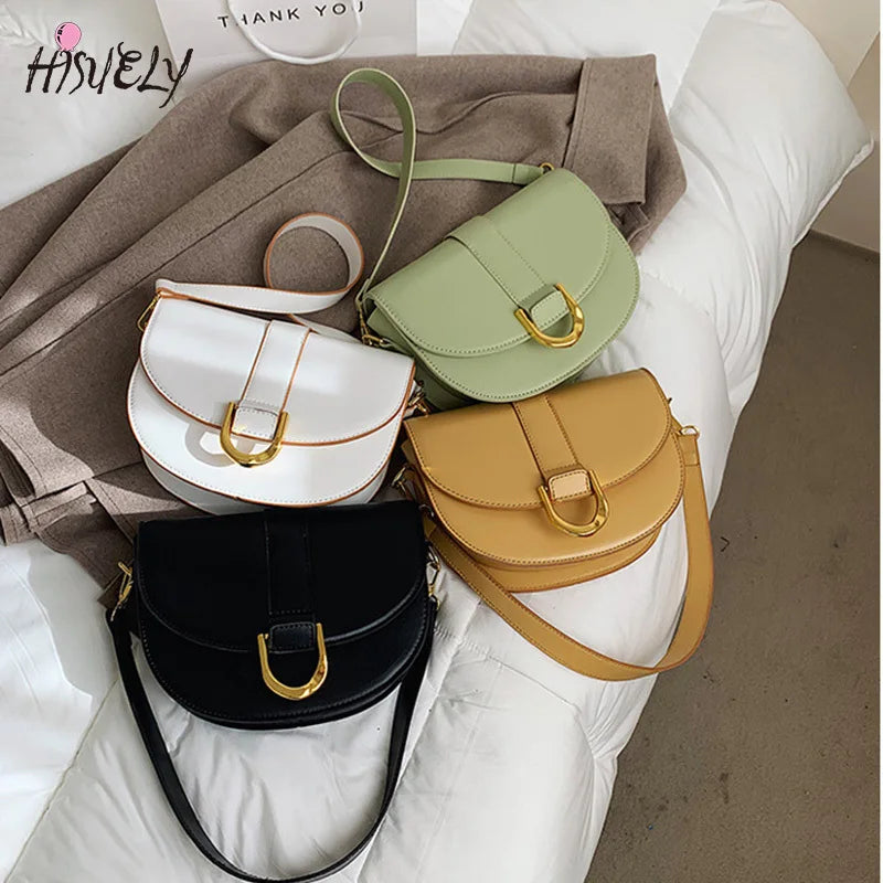 Semicircle Saddle Bag PU Leather Handbags Underarm Small Round Bag
