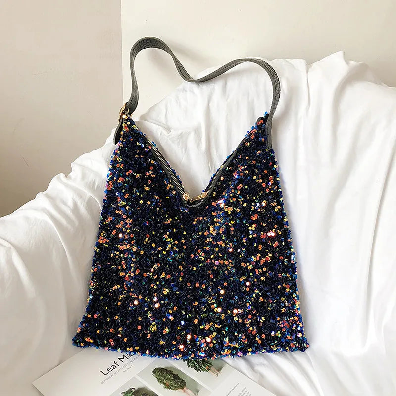 This stylish shoulder bag is perfect for everyday use. It features a sequined design and is spacious enough to carry all your essentials. Whether you're running errands or going out for a night on the town, this bag is the perfect accessory.