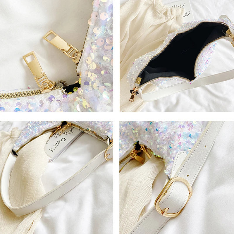 This sequined handbag is designed for females with a large capacity to accommodate all your essentials. It can be used as a shoulder or crossbody bag, perfect for shopping, outings, or everyday use.