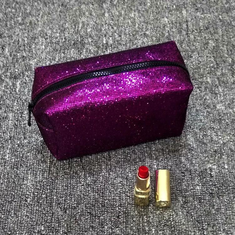 Add a touch of glamour to your beauty routine with this stunning sequins cosmetic bag. It features a large capacity to hold all your makeup essentials and can be used as a clutch or evening bag.