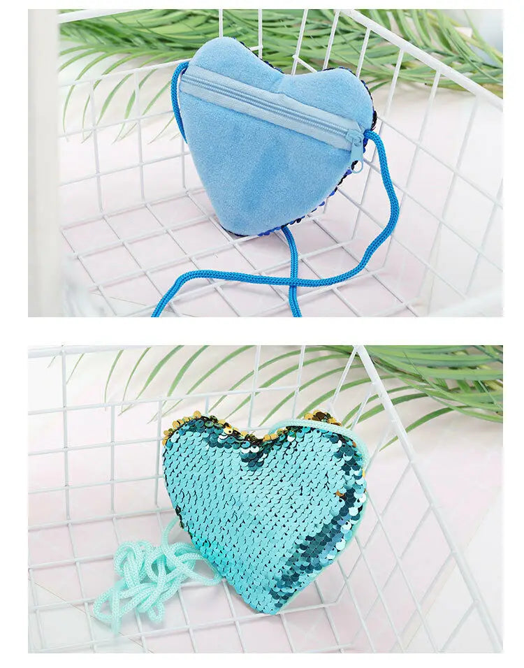 Sequins Heart Shape Shoulder Coin Bag for Girls