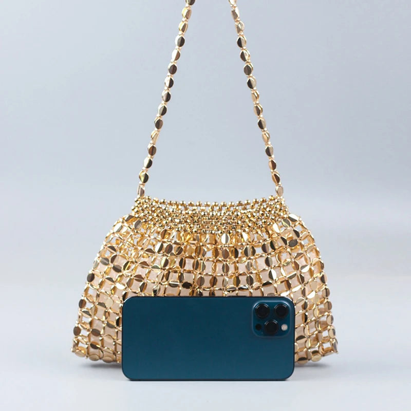 Description:This stunning silver evening clutch features intricate woven beads in a large dumpling shape, perfect for parties and special occasions.Features: Elegant silver flat evening handbag with beaded design Large dumpling shape for a unique and stylish look Ideal for formal events, parties, and evening occasions Features a shoulder strap for...