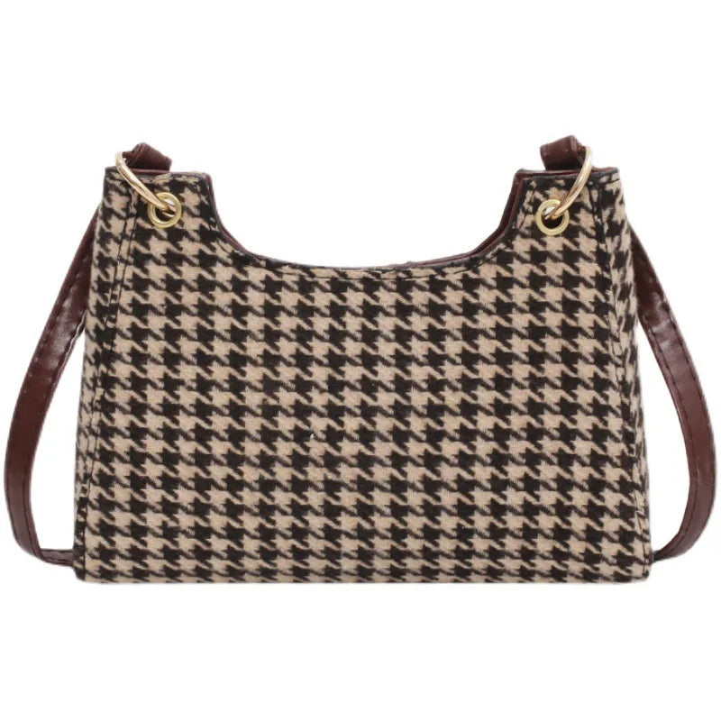 Shoulder Messenger Bag PU Leather Retro Houndstooth Print Handbags
