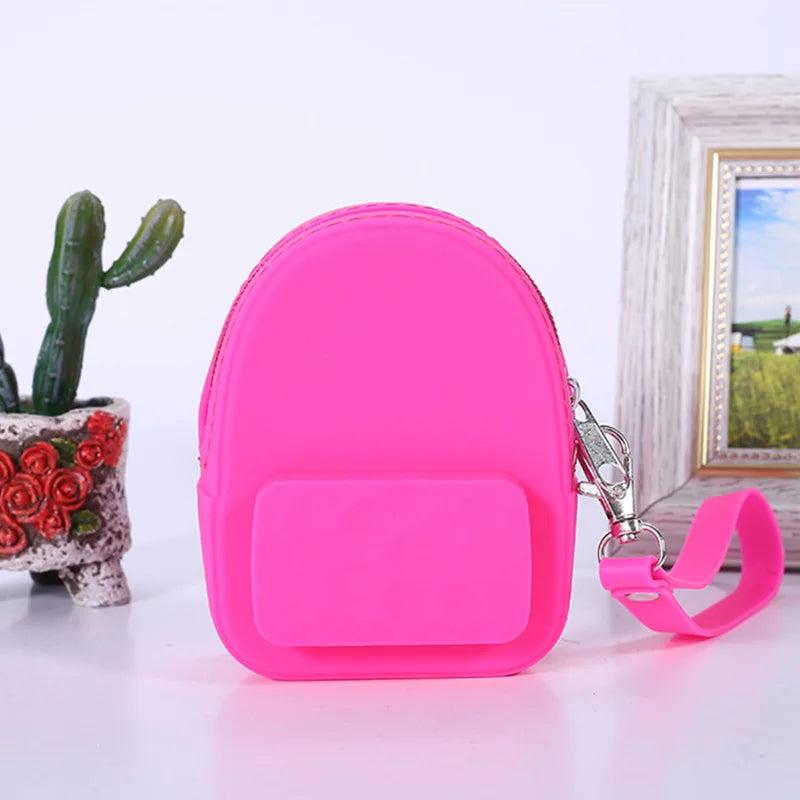 This mini bag made of silica gel is perfect for storing headphones, coins, wallets, and other small items. It is ideal for children and toddlers, serving as a cute coin purse or girls' handbag.