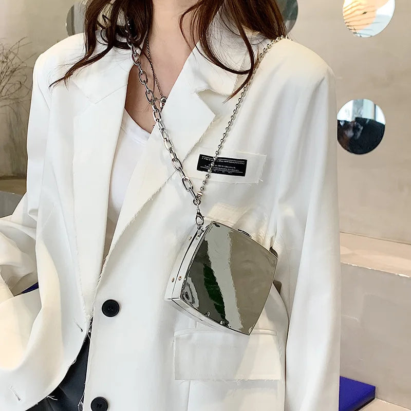 Silver Metal Box Bag Party Clutch Evening Bag Chain Crossbody Mini Bag