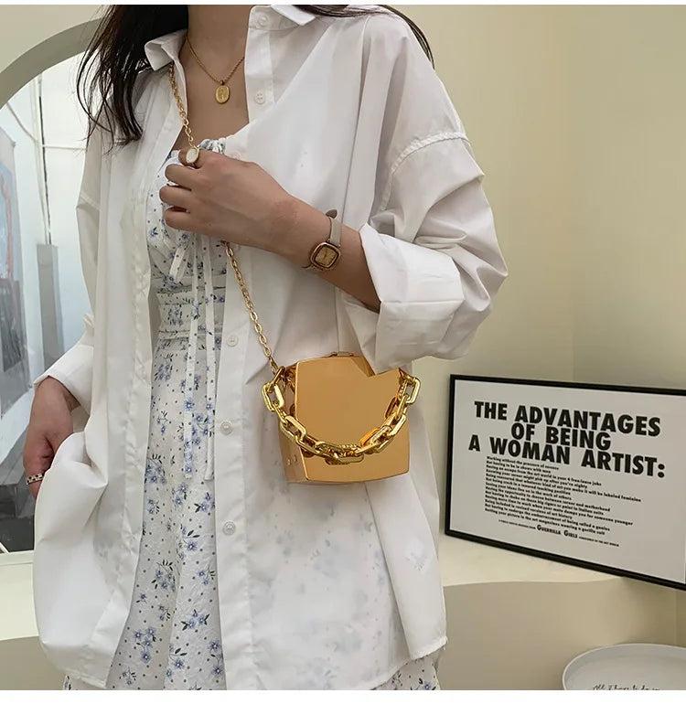 Add a touch of elegance to your outfit with this silver PVC box shoulder bag. Perfect for parties and evening events, this clutch bag features a chain crossbody strap for added convenience.