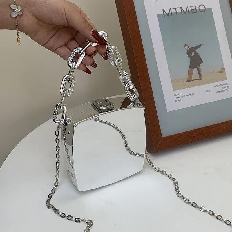 Silver PVC Evening Clutch Bag Crossbody Shoulder Bags Mini Purses
