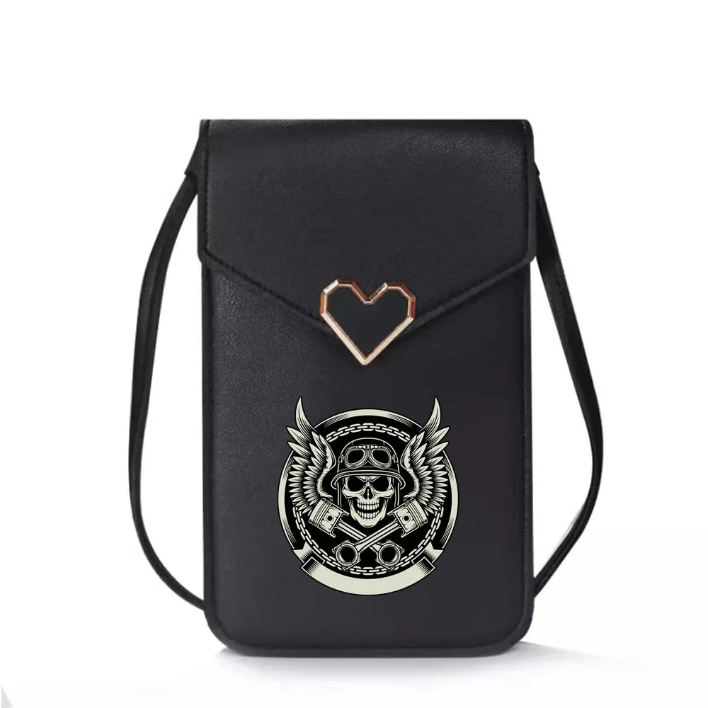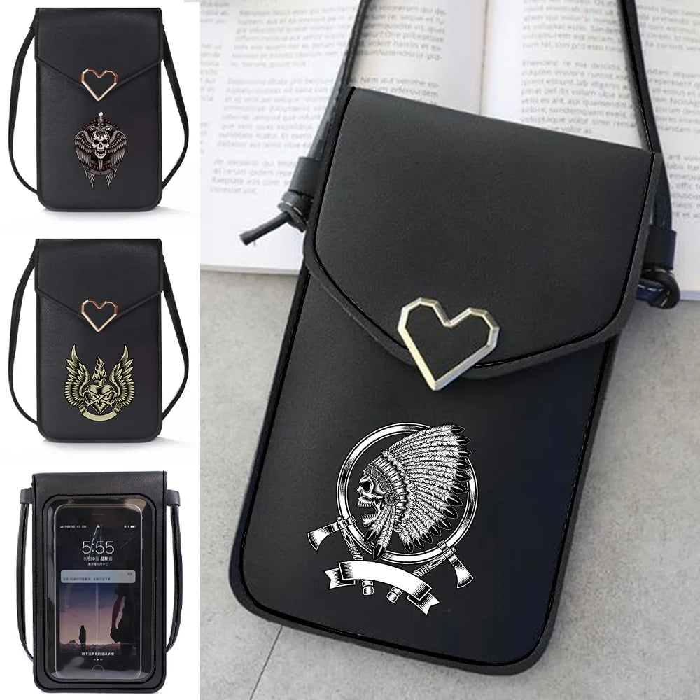 Skull Print Crossbody Bag Touch Screen Mini Mobile Phone Wallets