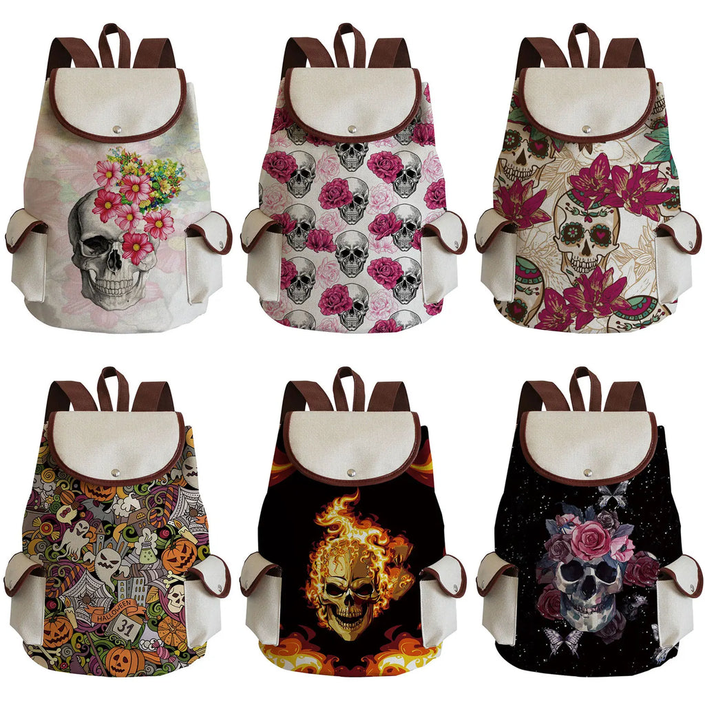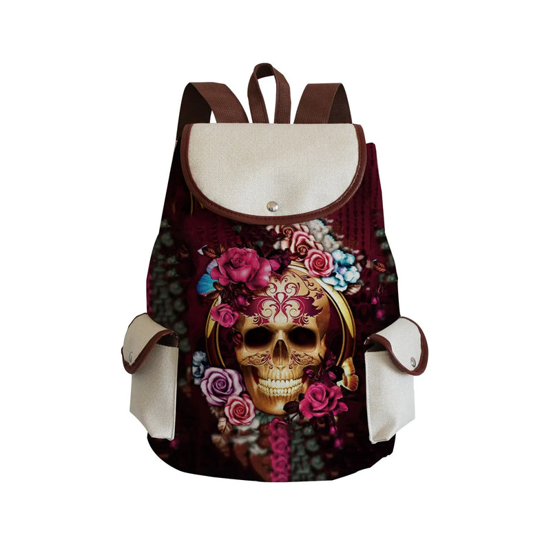 Skull Red Floral Printed Handbag Halloween Backpack