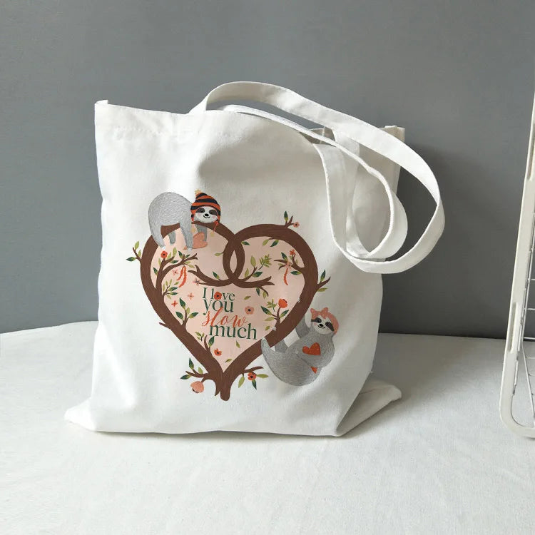 Carry your essentials in style with this classic literary retro tote bag featuring a sloth print design. The spacious interior and durable canvas material make it perfect for shopping or everyday use.