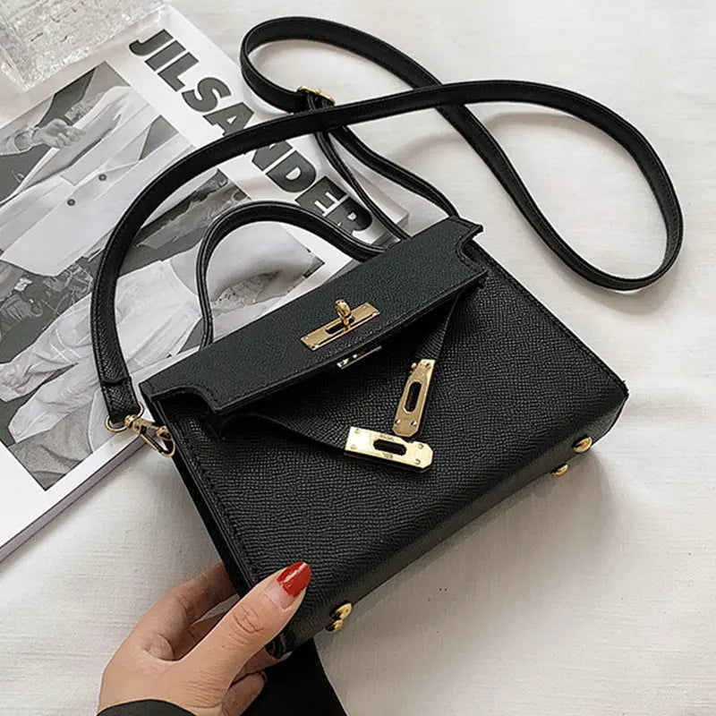 Small Solid PU Leather Shoulder Messenger Flap Handbag Female