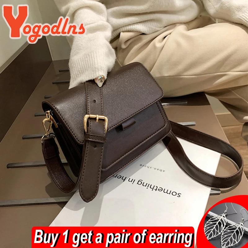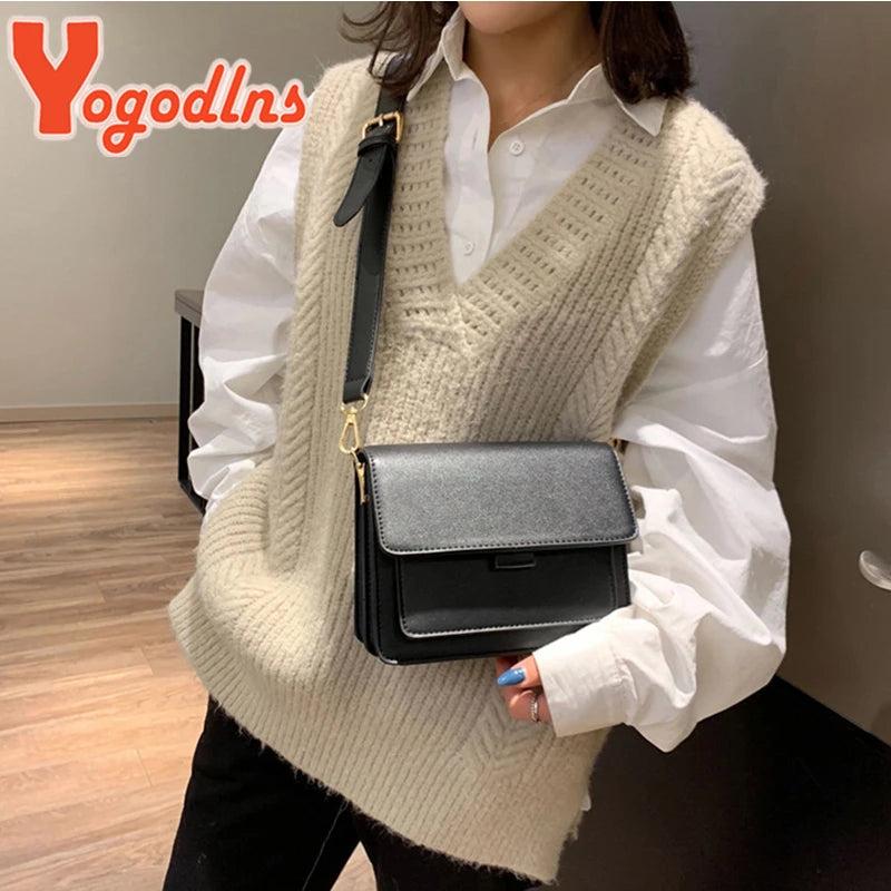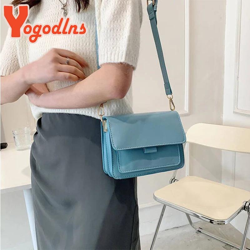 Small Square Bag Female PU Leather Shoulder Messenger Bag Flap Crossbody Bag