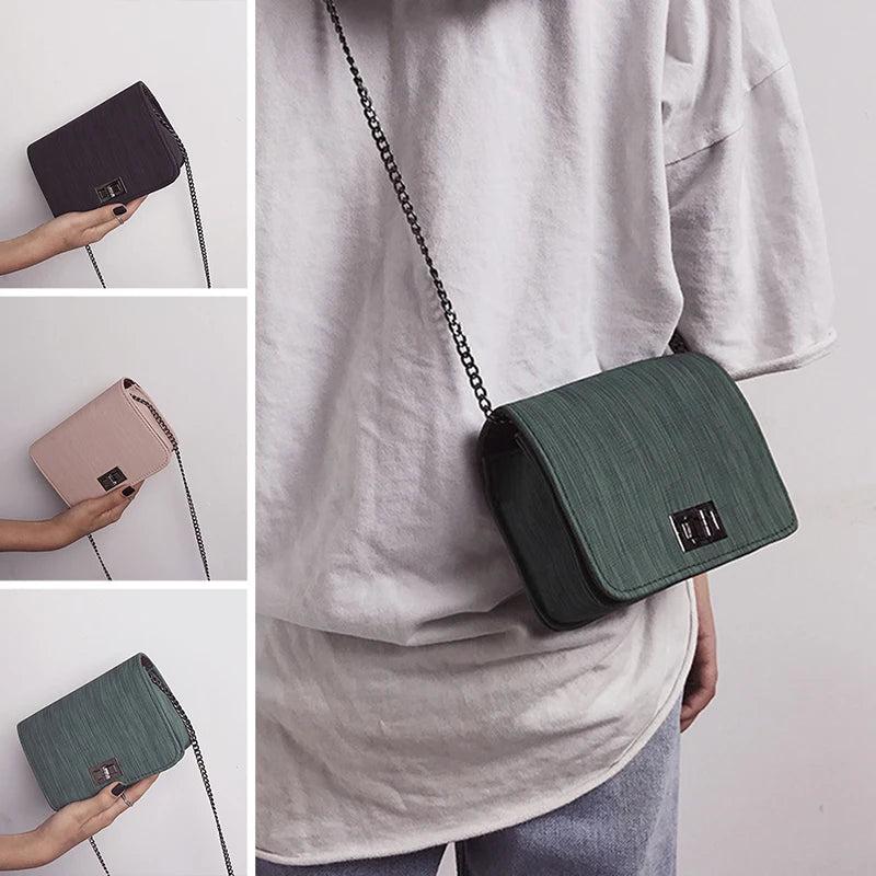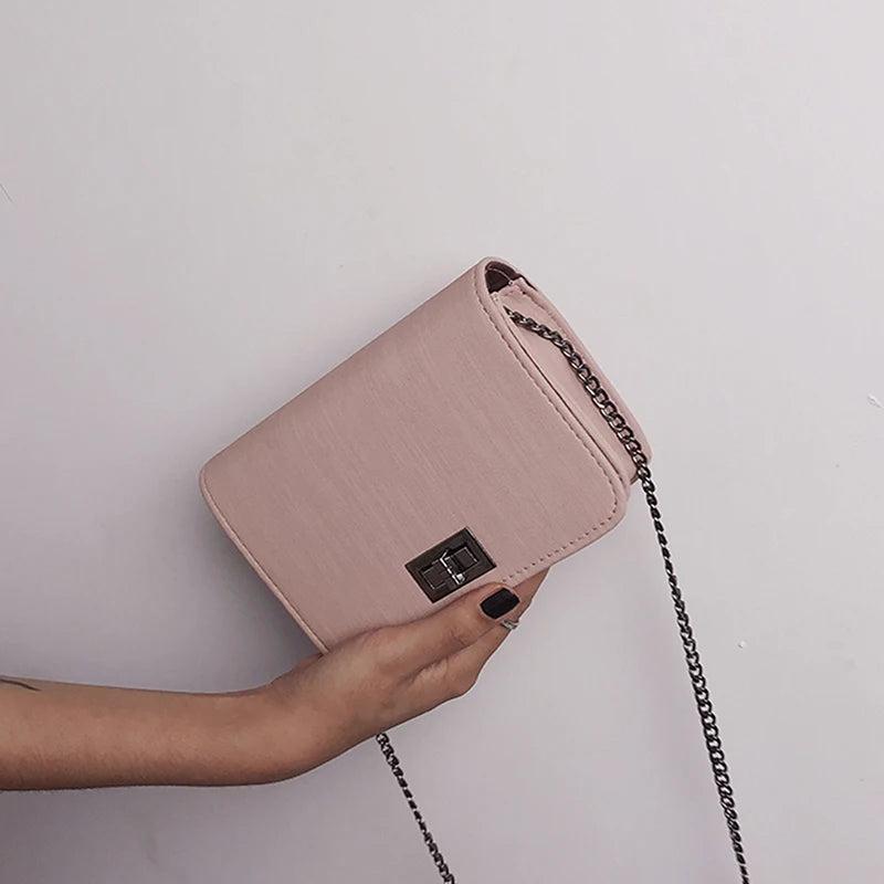 This small square messenger bag is the perfect accessory for carrying your essentials. It features a trendy chain strap and a stylish design.