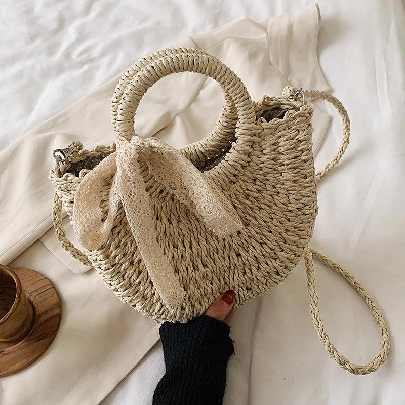 This small straw bag is perfect for a casual day out or a beach trip. It can be worn as a shoulder bag or crossbody with its adjustable strap.