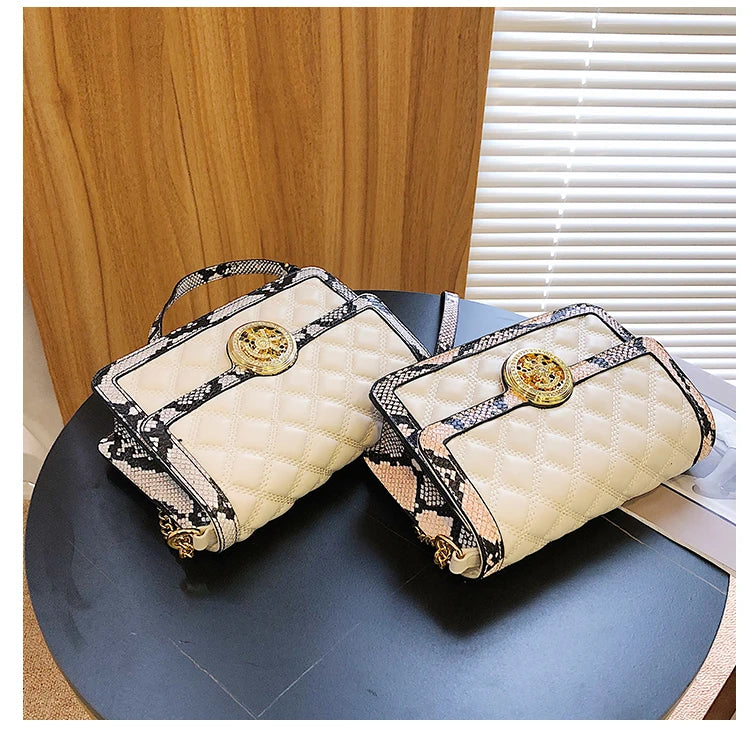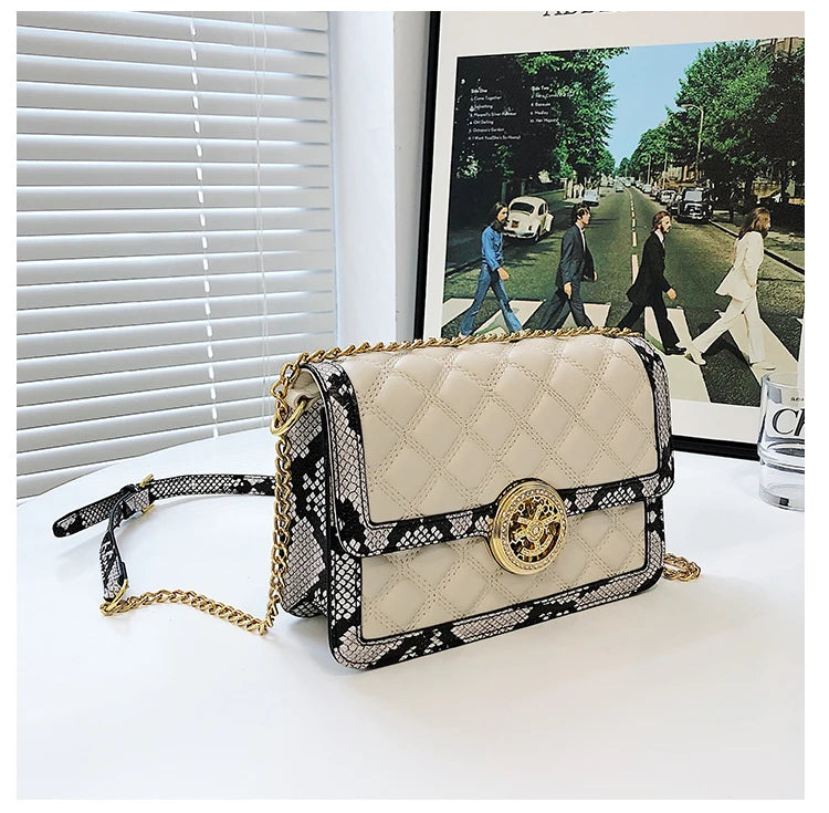Snake Pattern Cross Body Bag Wooden Clip Vintage Shoulder Bag