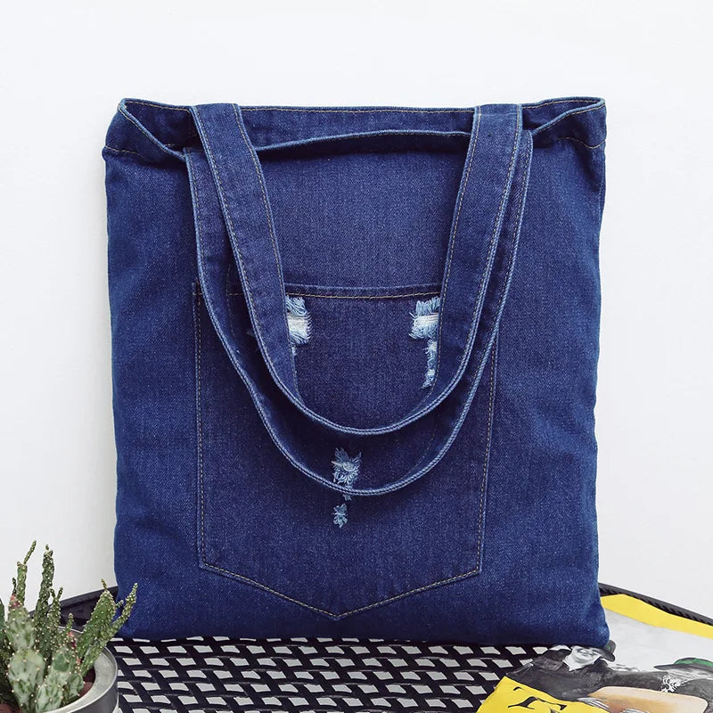 This trendy denim shoulder bag is perfect for students, tutors, and travelers. It features ripped details and a zipper for added style and security. Lightweight and spacious for all your essentials.