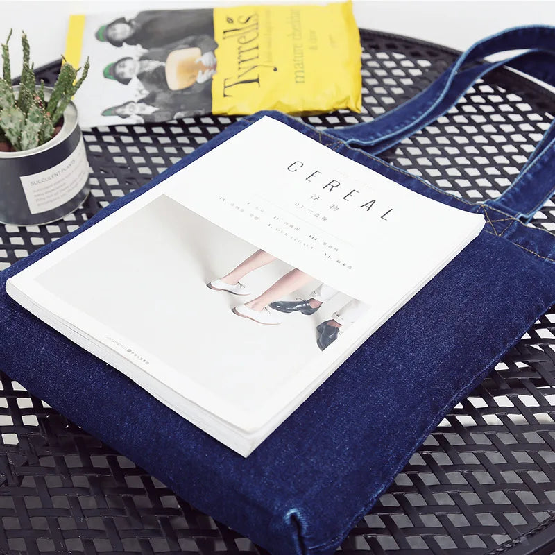Soft Denim Ripped Zipper Shoulder Bag Female Student Lightweight Tote Bag