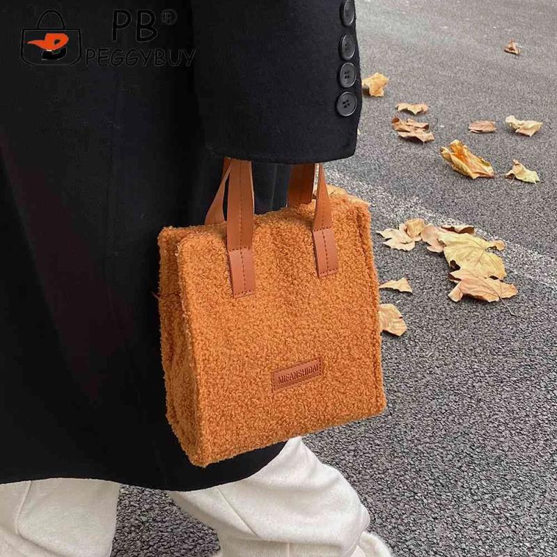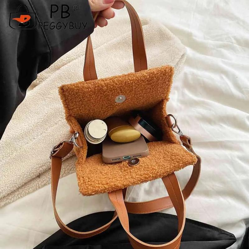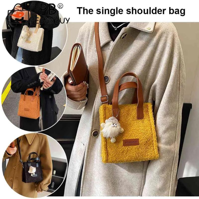 Soft Faux Lambswool Handbag with Pendant for Winter
