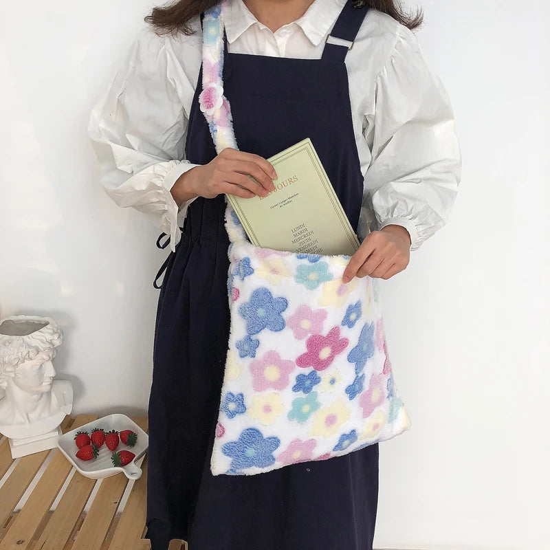 Soft Flowers Tote Plush Material Messenger Bag Female Student Large Capacity Sho