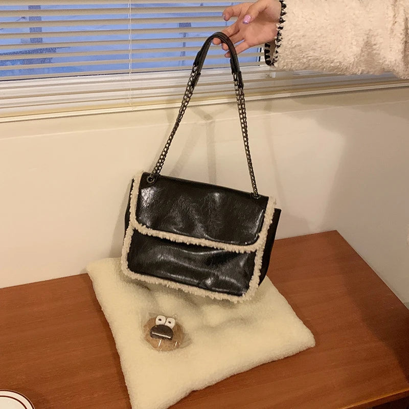 Soft Leather Chain Shoulder Crossbody Bag Lady Casual Fluffy Purse