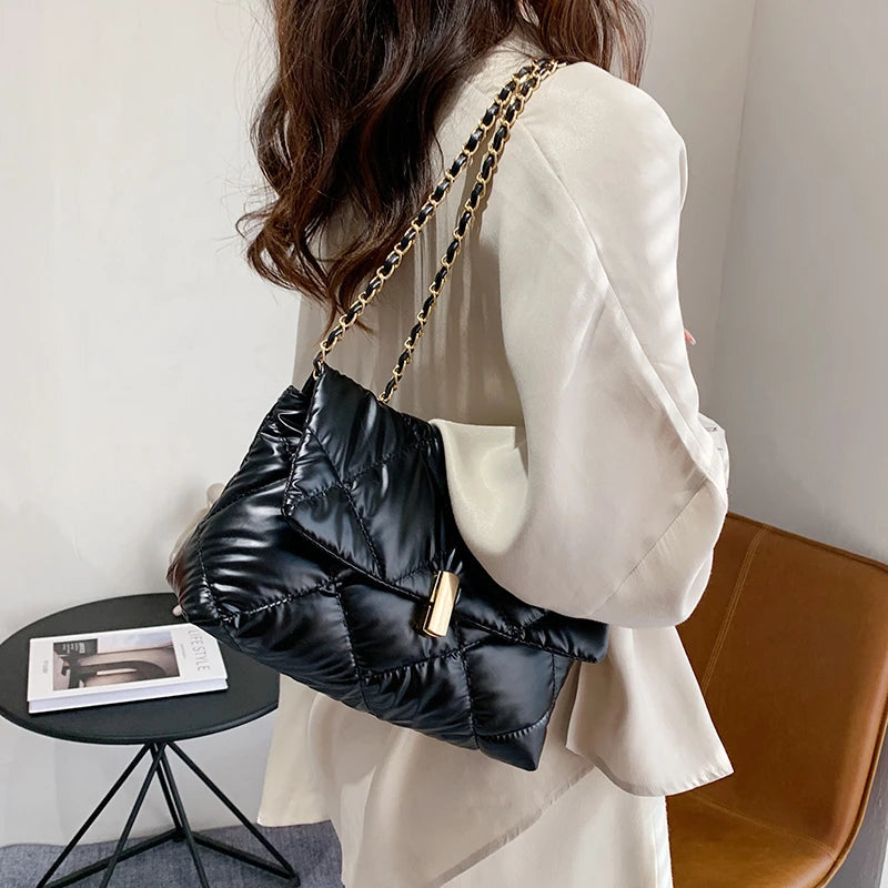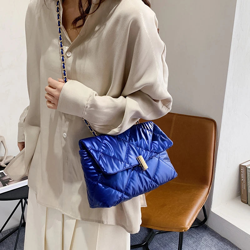 Soft Leather Chain Strap Shoulder Bag Flap Clutches Purse Crossbody Bag
