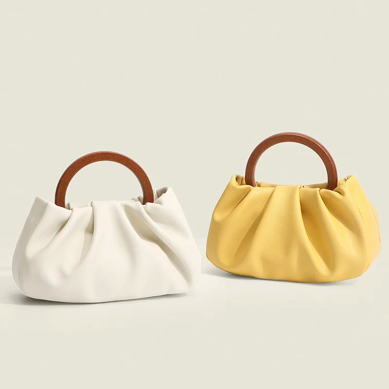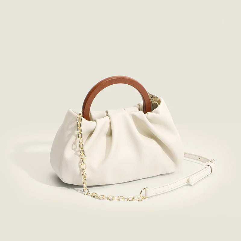 Stay trendy with this soft leather handbag featuring a wood handle design. Perfect for autumn and winter, this shoulder bag is both practical and stylish.