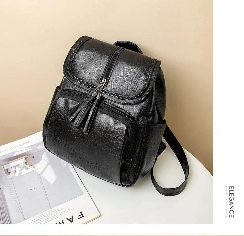 This backpack handbag is made of soft leather and features a single shoulder strap. It has a large capacity, making it ideal for travel, school, or everyday use.