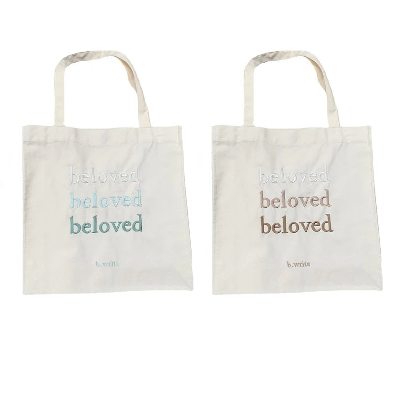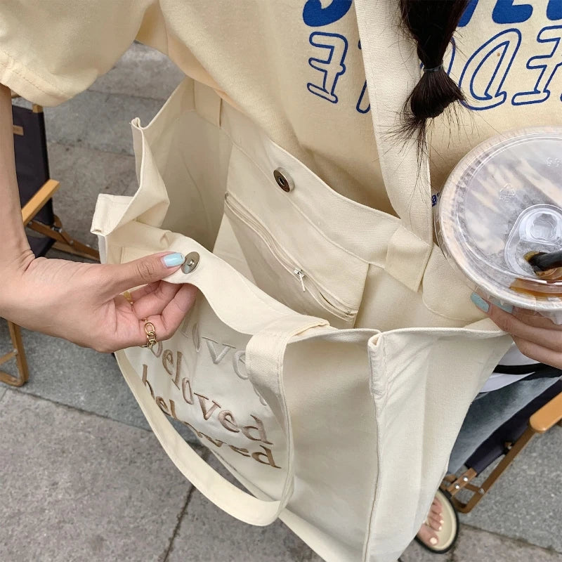 Solid Canvas Tote Bag Large Shoulder Handbag Beloved Letter Embroidered