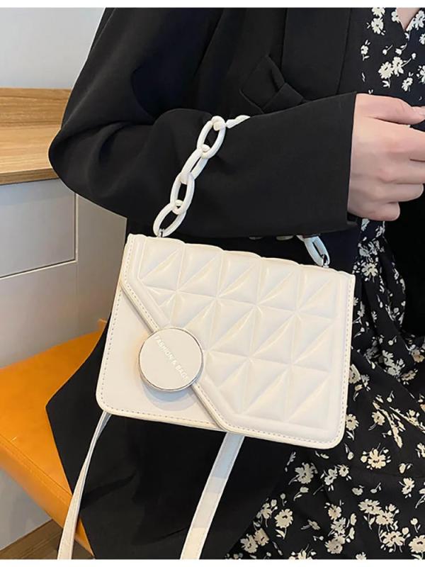 Solid Chain Wome's Shoulder Bag Pu Leather Lingge Ladies Crossbody Bags