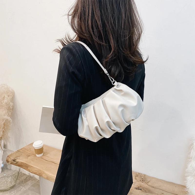 Solid Leather Handbag Pleated Shoulder Clutch Totes Bag Bolsa Feminina