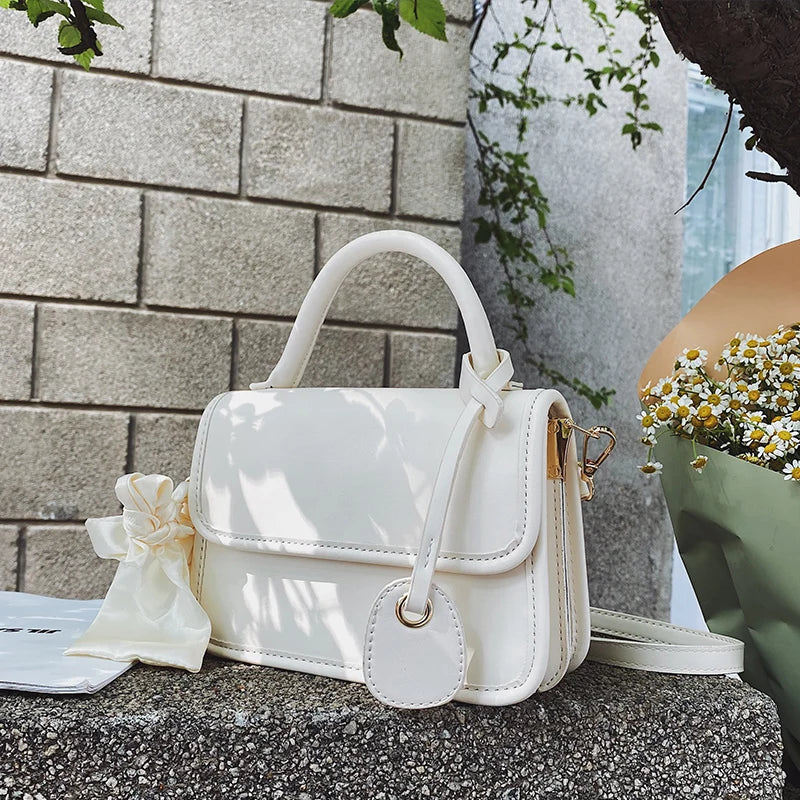 Solid PU Female Bag Silk Scarf Messenger Bag Ladies Shoulder Bag