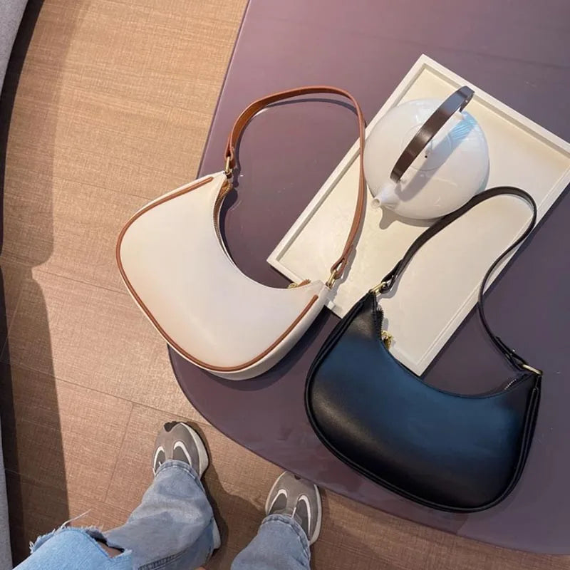 This stylish underarm shoulder bag is made of high-quality PU leather, perfect for casual outings. It features a half moon design and offers portable functionality.