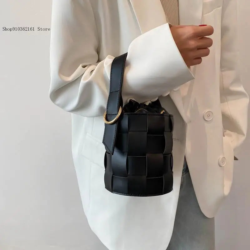 Solid Woven Bucket Bag Handbag Retro Messenger Bag