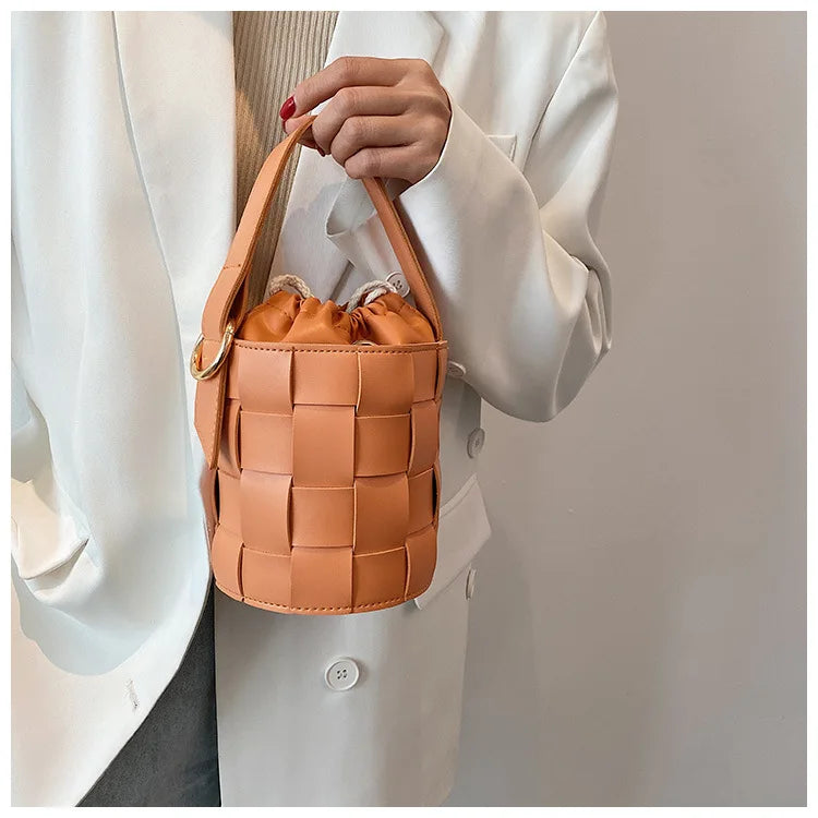 This solid woven bucket bag combines retro style with functionality. Perfect for everyday use or casual outings.