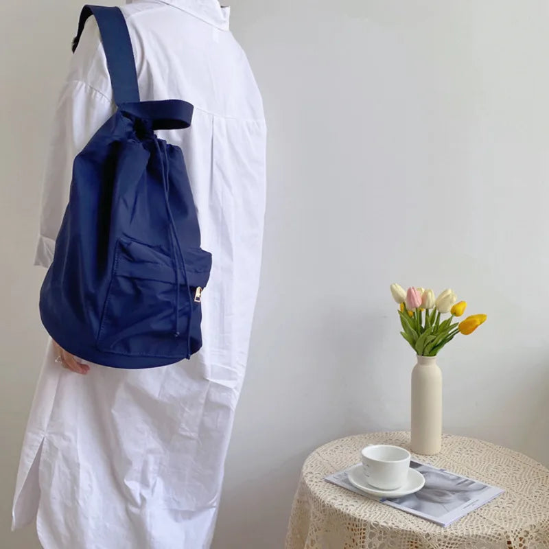 Spring Casual Nylon Bucket Bag Drawstring Shoulder Bag