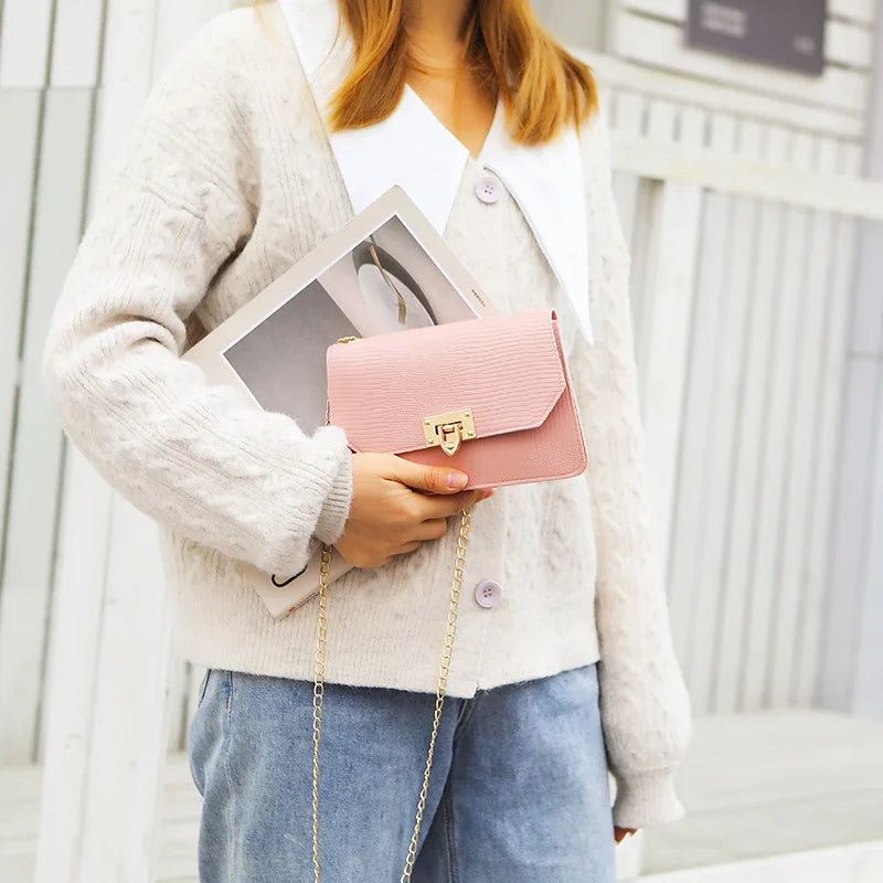 This small square bag is a stylish and versatile accessory suitable for any occasion. It features a chain strap for a trendy look.