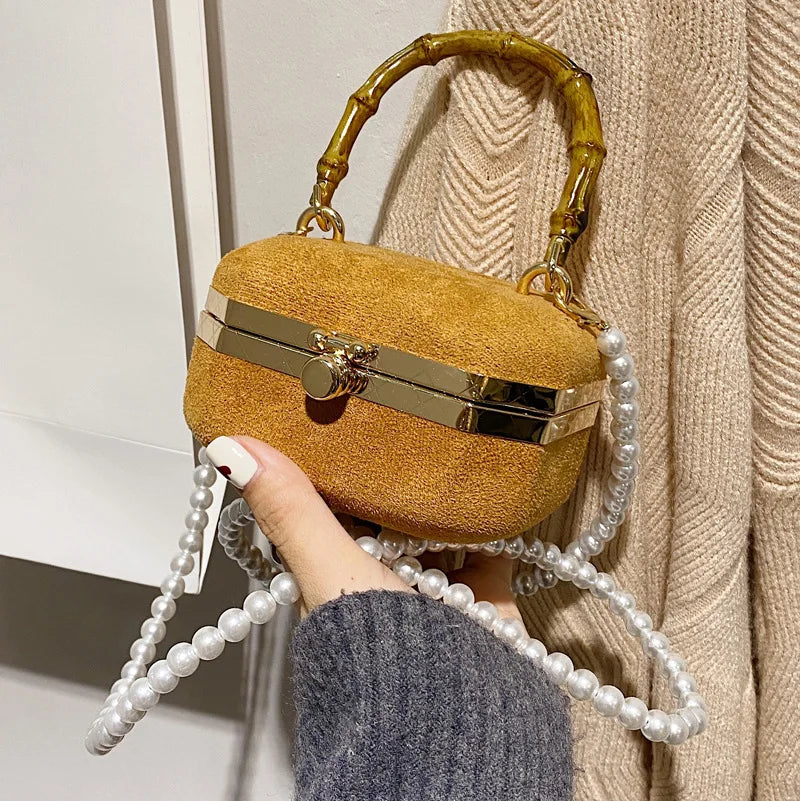 Description:Elegant evening bag made of faux suede with a retro square design and wood grain detailing. Perfect for parties and special occasions.Features: Faux suede evening bag with retro square design Wood grain detailing for a unique touch Portable clutch bag for parties and special events Spacious interior to hold essentials...