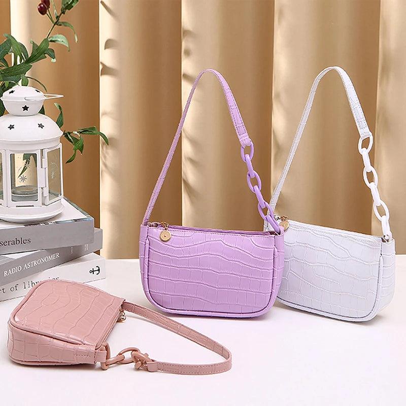 Elegant and stylish one shoulder crossbody bag made of PU leather with stone pattern design. Perfect for carrying essentials in a compact and fashionable way.