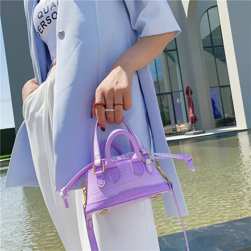 This fashionable ladies shoulder bag features a stone pattern design with lace-up detailing. It is made of durable PU material, perfect for everyday use.