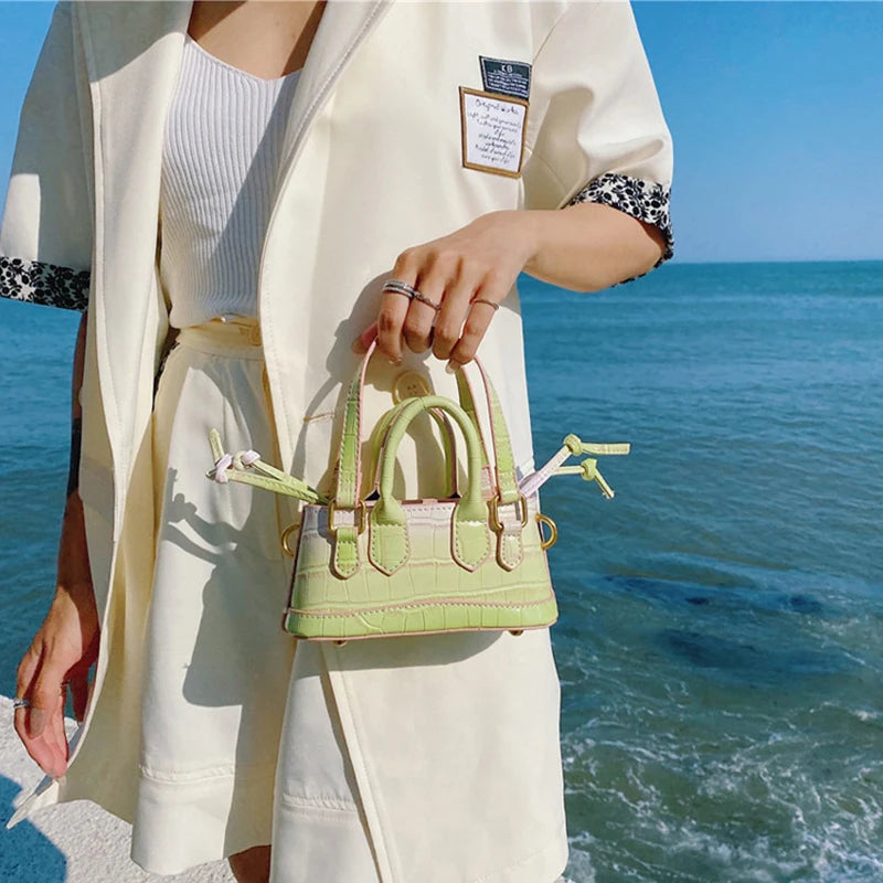 Stone Pattern Pu Ladies Shoulder Bag Lace-Up Version Tote Bag