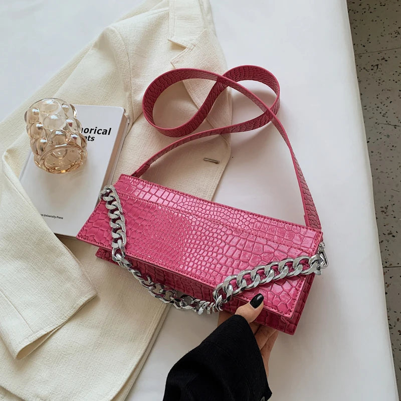 - Features a chain strap for a chic touch